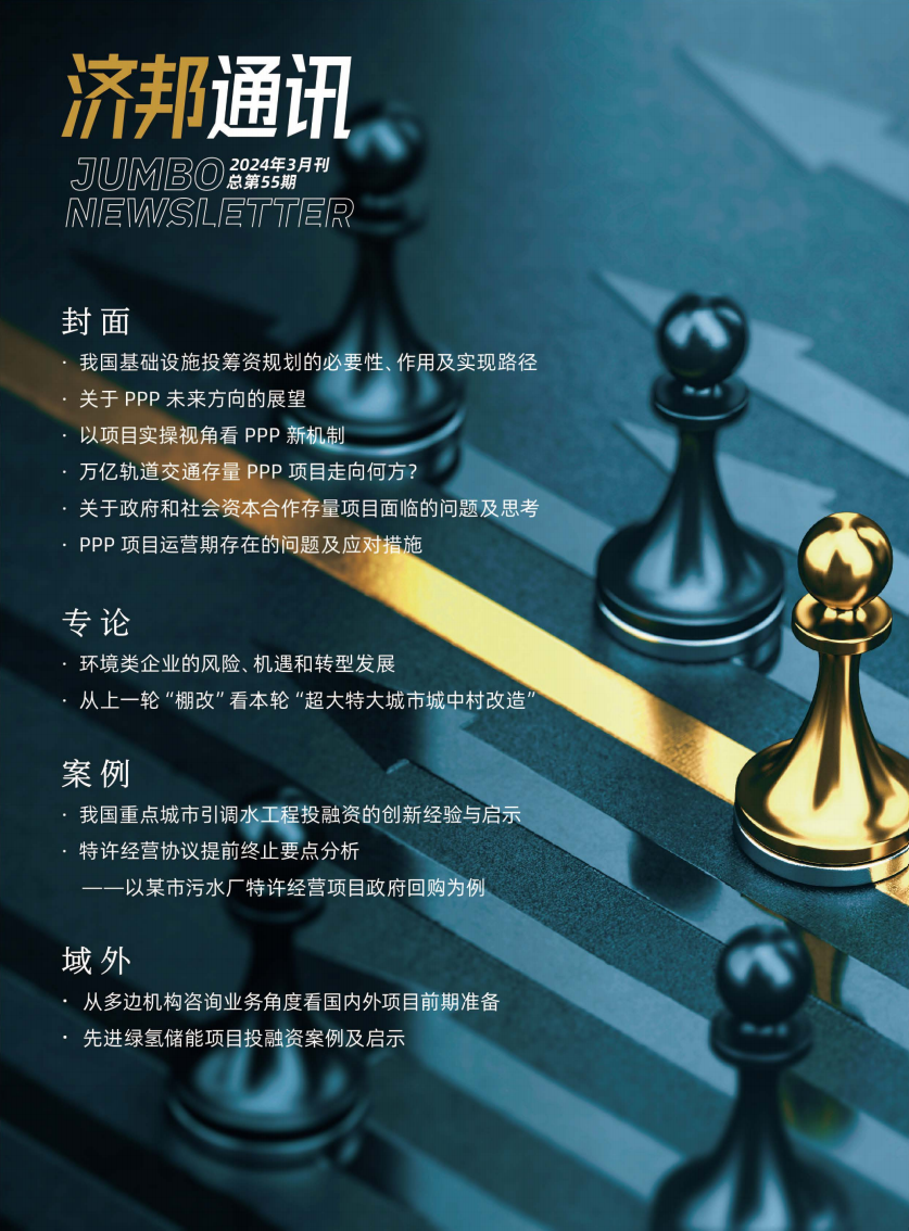 濟邦公司自創(chuàng)立以來,一直致力于提供基礎設施咨詢服務,作為中國基礎設施民營化的見證者,一路行來,諸味雜陳,收獲良多。為讓更多人了解濟邦,分享濟邦的經(jīng)驗和觀點,同時也為回應很多政府部門的領導、客戶和朋友在交流時多次給我們的建議,我們創(chuàng)辦了業(yè)內(nèi)第一份行業(yè)內(nèi)刊——《濟邦通訊》。《濟邦通訊》是一份內(nèi)容充實、編排精美的印刷版雙月刊。
